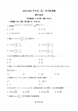 山西省大同市第一中学校2024-2025学年高三上学期第二次学情监测数学试题+答案