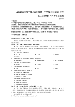 山西省大同市第一中学2024-2025学年高三上学期9月月考英语试题+答案