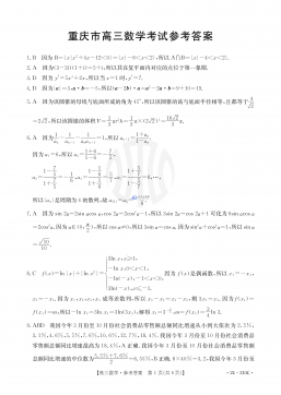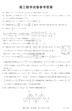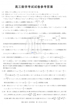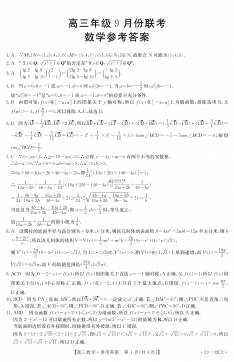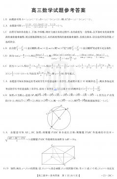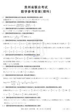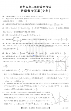 书书书!高三数学"参考答案!第!!!!!页#共"页$文科%"#$%&"'"贵州省高三年级联合考试数学参考答案!文科"!!(!由题意可得")#"%!###!"$#则$$")#"%!###!"#!#!*!因为%)$%#+#所以%)$,#+#所以%,&%,$)$%#+,&$$,#+%,$)$&,-,$#&%#%+!因为%,&%,$是纯虚数#所以$&,-)解得&)%#!$!.!由题意可得从选择&物理'化学'生物(组合的学生中应抽取的人数是"&/#&&&,$#&,#0&)!&!"!'!因为')#123$##,!$%)#123)#$#,!!#%,!-*#所以为了得到函数')#123$##,!$%的...