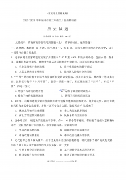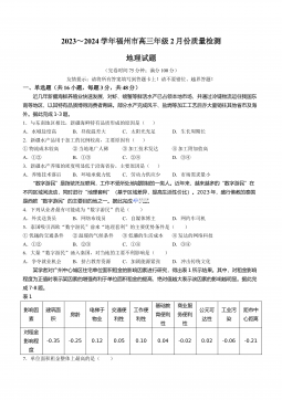 福建省福州市2023-2024学年高三下学期2月份质量检测地理试题