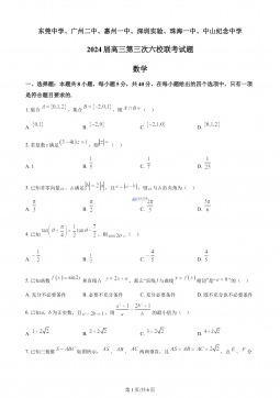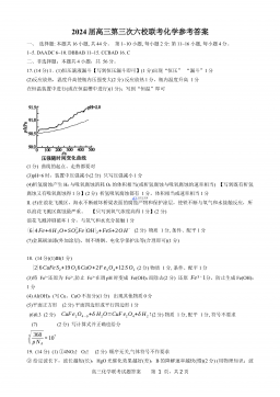 2024届高三第三次六校联考化学参考答案一、选择题:本题共16小题,共44分。第1~10小题,每小题2分:第11~16小题,每小题4分。1~5.DAADC6~10.DBBAB11~15.CCBAD16.C二、非选择题:本题共4小题,共56分。17.(14分)I.(1)恒压滴液漏斗【写到恒压漏斗即可】(1分)出现“恒压”“漏斗”1分(2)反应放热,温度升高使瓶内压强变大(2分)反应放热1分,瓶内温度升高1分在恒温装置中进行(或在恒温槽中进行)(1分);写到“恒温”即可(1分)曲线的起点、走势都要对(3)pH=6时,装置中压强减小(2分)只写压强减小1分(4)析氢腐蚀产生H₂与吸氧腐蚀消耗O₂的体...