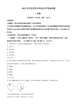 全国各地中考真题:河北省保定市2018年初中毕业生升学文化课考试生物试卷(原卷版)