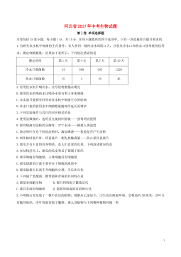 【淘宝搜索店铺:中小学教辅资源店微信:mlxt2022】河北省保定市2018年初中毕业生升学文化课考试生物试卷第Ⅰ卷单项选择题1.为探究酸雨是否影响种子的萌发,科研人员用小麦种子进行了模拟实验,除表中变量外其余环境条件均相同且适宜,发芽率统计结果见下表。下列说法正确的是组别处理发芽率甲加入模拟酸雨30%乙加入等量清水90%A.本实验的变量是清水的多少B.多做几组重复实验可以消除误差C.只要不受酸雨影响,种子就可以萌发D.实验证明酸雨不利于小麦种子的萌发2.细胞是生物体结构和功能的基本单位,下列有关细胞的叙述错误的是A.所有植物细胞都有叶绿体B.染色体存在于细胞核中C.草履虫能独立完成生命活动D...