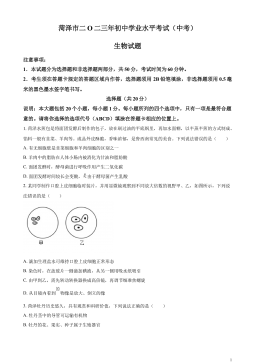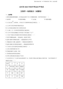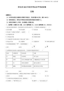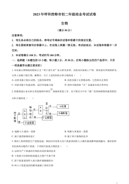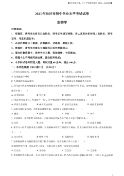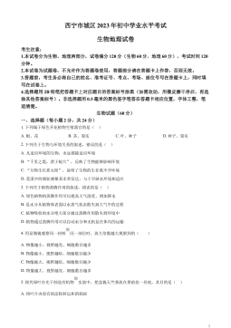 全国各地中考真题:2023年青海省西宁市城区2023年中考生物真题(原卷版)