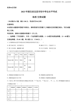 西宁市城区2023年初中学业水平考试生物地理试卷考生注意:1.本试卷分为生物、地理两部分,试卷满分120分(生物60分、地理60分),考试时间120分钟。2.本试卷为试题卷,不允许作为答题卷使用,答题部分请在答题卡上作答,否则无效。3.答题前,考生务必将自己的姓名、准考证号、考点、考场、座位号写在答题卡上,同时填写在试卷上。4.选择题用2B铅笔把答题卡上对应题目的答案标号涂黑(如需改动,用橡皮擦干净后,再选涂其他答案标号)。非选择题用0.5毫米的黑色签字笔答在答题卡相应位置,字体工整,笔迹清楚。生物试题(60分)一、选择题(每小题2分,共24分)1.下列属于绿色开花植物生殖器官的是()A.根、...