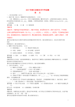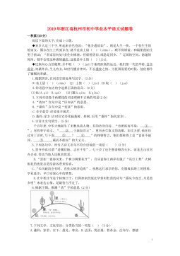 全国各地中考真题:浙江省杭州市2019年中考语文真题试题