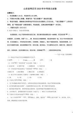 2019年山东省烟台市初中学业水平考试语文试题注意事项:1.本试卷共8页,共120分:考试时间120分钟。考试结束后,请将本试卷和答题卡一并交回。2.答题前。务必用0.5毫来黑色签字笔将自己的姓名、准考证号、座位号镇写在答题卡规定的位置上。3.必须用0.5毫米黑色签字笔作答,答案必须写在答题卡指定区城内相应的位置;如*改动,先划掉原来的答案。然后再写上新的答案;不能使用涂改液、胶带纸、修正带。4.写在试卷上或答题卡指定区域外的答案无效。一、书写与卷面(5分)1.书写。(3分)2.卷面。(2分) 二、积累与运用(27分)3.默写。(14分)(1)独怜幽草涧边生,。(《滁州西涧》)⑵,白水绕东城...