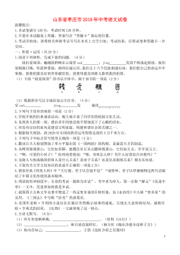 全国各地中考真题:山东省烟台市2019年中考语文真题试题