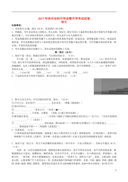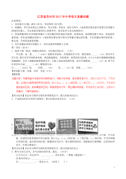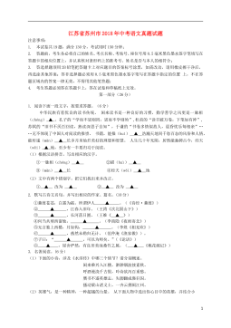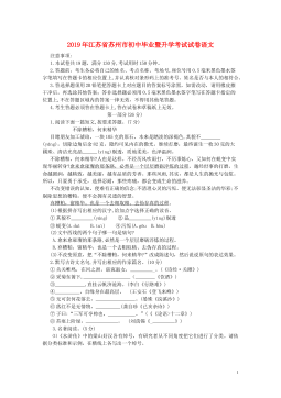 全国各地中考真题:江苏省苏州市2019年中考语文真题试题