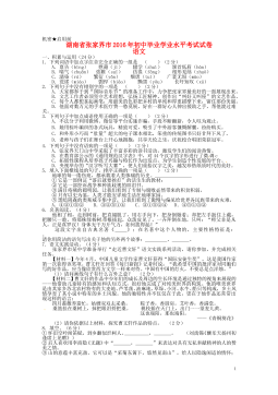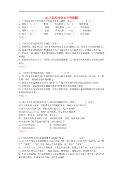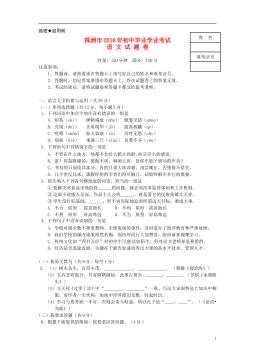 湖南省株洲市2019年初中学业水平考试语文试题卷(时间:150分钟满分:150分)注意事项:1.答题前,请按要求在答题卡上填写好自己的姓名和准考证号2.答题时,切记答案要填在答题卡上,答在试题卷上的答案无效。3.考试结束后,请将试题卷和答题卡都交给监考老师。一、语言文字积累与运用(共34分)(一)单项选择题(共15分,每小题3分)1.下列句子中加点字的注音有错误的一句是(A)A.游泳场的八千名观众一齐翘(qiào)首而望、屏(píng)息敛声的一刹那。B.各种花的香在空气里酝酿(yùnniàng),鸟儿将窠(kē)巢安在繁花嫩叶当中。C.用一枝短棒支起一面大竹筛。下面撒些秕(b)ĭ谷,棒上系(...