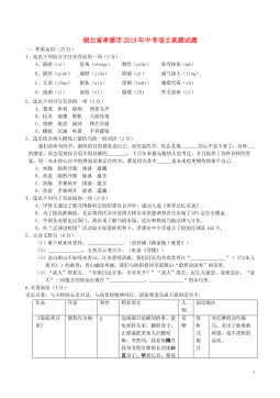 全国各地中考真题:湖北省宜昌市2018年中考语文真题试题(含答案)