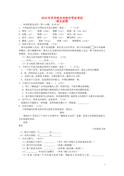全国各地中考真题:黑龙江省大庆市2016年中考语文试题(word版,答案不全)