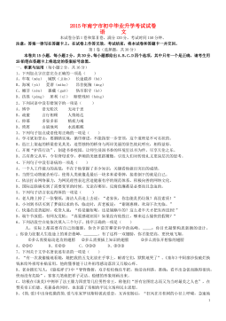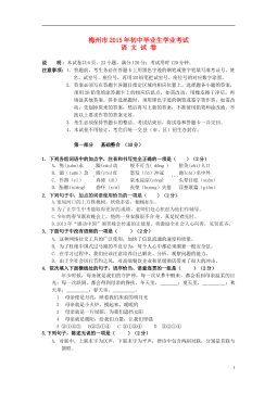 2019年广西北部湾经济区初中学业水平考试语文(考试时间:150分钟满分:120分)注意:本试卷分试题卷和答题卡两部分,答案一律填写在答题卡上,在试题卷上作答无效;考试结束后,将本试题卷和答题卡一并交回。第I卷(选择题共30分)本卷共15小题,每小题2分,共30分。每小题都给出A、B、C、D四个选项,其中只有一个正确。请考生用2B铅笔在答题卡上将选定的答案标号涂黑。一、积累与运用(每小题2分,共16分)1.下列加点字注音有误的一项是A.晶莹(yíng) 和蔼(ǎi) 教学相长(zhǎng)B.端详(duān) 别墅(yě) 与日俱增(jù)C.轻捷(jié) 筹划(chóu) 不蔓...