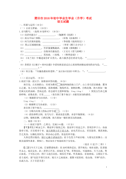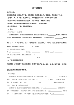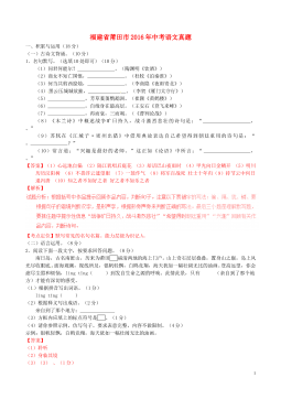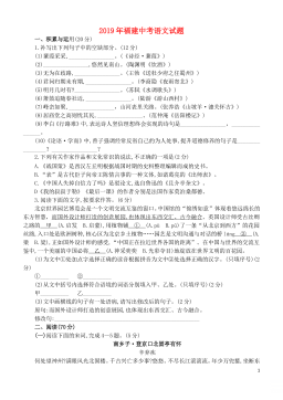 2019年福建中考语文试题一、积累与运用(20分) 1.补写出下列句子中的空缺部分。(12分) (1)蒹葭采采,________________。(《诗经·蒹葭》) (2)________________,悠然见南山。(陶渊明《饮酒》) (3)无为在歧路,________________。(王勃《送杜少府之任蜀州》) (4)君问归期未有期,________________。(李商隐《夜雨寄北》) (5)明月几时有?________________。(苏轼《水调歌头》) (6)箫鼓追随春社近,________________。(陆游《游山西村》) (7)峰峦如聚,________...