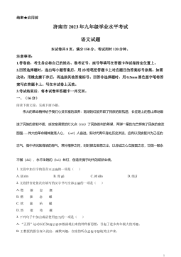 2023年呼伦贝尔市、兴安盟初中毕业生学业考试语文温馨提示:1.本试卷共10页,满分为120分。考试时间150分钟。2.答卷前务必将自己的姓名、准考证号、座位号填写在答题卡上;请用05毫米的黑色字迹签字笔直接答在答题卡上。在试卷上作答无效。3.请将姓名与准考证号填写在本试卷相应位置上。4.考试结束,将试卷、答题卡和草稿纸一并交回。一、积累与运用(22分)1.下列词语中加点字的注音完全正确的一项是()A.分歧(qí)汲取(xī)告诫(jiè)信手拈来(niān)B.伫立(zhù)闭塞(sè)胆怯(què)惟妙惟肖(xiào)C.称职(chèng)赃物(zāng)格调(diào)戛然而止(jiá)...
