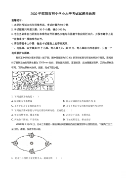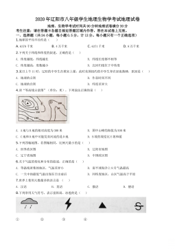 永州市2021年初中学业水平考试地理(试题卷)气温和降水是我们最为关注的气候要素,读世界年均气温分布图,结合所学知识,完成下面小题1.有关世界气温分布特点的说法正确的是()①气温从低纬问高纬度迹渐降低②南半球等温线比北半球更曲折③等温线越密集的地方,气温变化越小④同纬度的陆地与海洋气温不一样A.①②B.①④C.③②D.②④2.影响甲地区气候的主要因素是()A.纬度位置B.海陆分布C.地形地势D.人类活动3.读南美洲地形图,下列叙述正确的是()①南美洲东临大西洋,西临太平洋②南美洲大部分位于北温带③a地区地形以平原为主④b河流是世界上径流量最大的河流A.①②B.①④C.②③D.③④4.下列有关世...