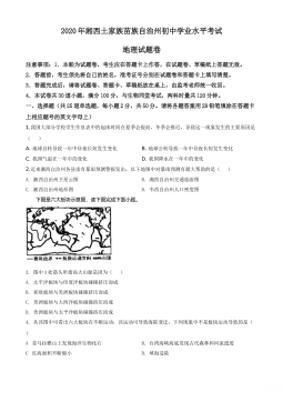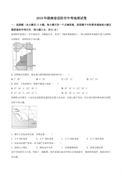 精品解析:湖南永州市2021年中考地理真题(原卷版)