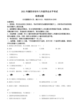 湖北省宜昌市2021年中考地理、生物真题(地理部分)(原卷版)