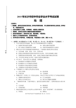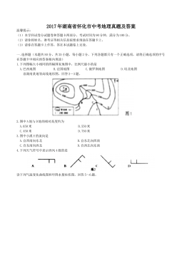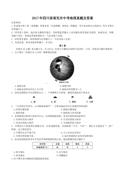2017年天津市中考地理试卷(原卷)