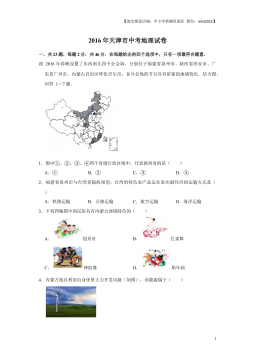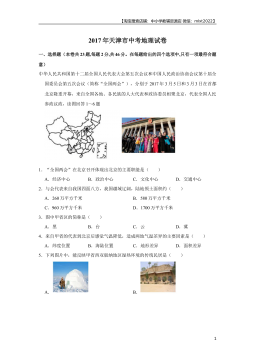 【淘宝搜索店铺:中小学教辅资源店微信:mlxt2022】2017年天津市中考地理试卷一、选择题(本卷共23题,每题2分,共46分。在每题给出的四个选项中,只有一项最符合题意)中华人民共和国第十二届全国人民代表大会第五次会议和中国人民政治协商会议第十届全国委员会第五次会议(简称“全国两会”),分别于2017年3月5日和3月3日在首都北京隆重开幕,来自全国各地、各民族的人大代表和政协委员相聚北京,代表全国人民参政议政,读图回答1~6题1.“全国两会”在北京召开体现出北京的主要职能是( )A.经济中心B.政治中心C.文化中心D.交通中心2.与会代表来自我国四面八方,我国疆域辽阔,陆地领土面积约( ...