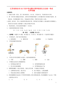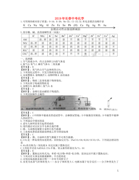 吉林省2019年初中毕业生水平考试化学试题可能用到的相对原子质量:H-10-16C1-35.5K-39一、单项选择题(每小题1分,共10分)1.2019年是“国际化学元素周期表年”,编制元素周期表的俄国科学家是A.侯德榜B.屠呦呦C.门捷列夫D.拉瓦锡2.通常情况下,空气中体积分数约占21%的气体是A.氮气B.氧气C.二氧化碳D.稀有气体3.下列有关分子、原子说法错误的是A.很小B.不断运动C.有间隔D.不可分4.下列实验操作正确的是5.下列说法错误的是A.NaHCO3俗称小苏打B.CaCO3可用作补钙剂C.Na2CO3俗称火碱D.K2CO3属于钾肥6.下列实验现象描述正确的是A.铁丝燃烧时发...