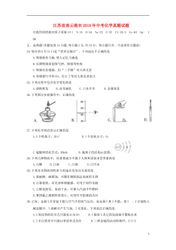 江苏省连云港市2018年中考化学真题试题可能用到的相对原子质量:H-1 N-14 O-16 Na-23 S-32 C1-35.5 Cu-64 Ag- 108五、选择题(本题包括12小题,每小题2分,共24分。每小题只有一个选项符合题意)24.每年的5月31日是“世界无烟日”。下列说法不正确的是A.吸烟损害大脑,使人记忆力减退B.长期吸烟易患肺气肿、肺癌等疾病C.吸烟有害健康,但“二手烟”对人体无害D.香烟烟气中的CO、尼古丁等对人体危害很大25.下列过程中包含化学变化的是A.酒精挥发B.冰雪融化C.干冰升华D.金属氧化26.下列图示实验操作中,正确的是27.下列化学用语表示正确的是A.3个铁离...