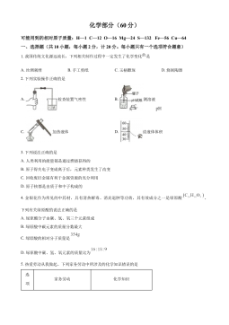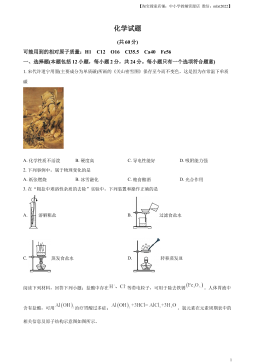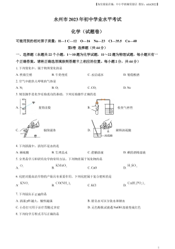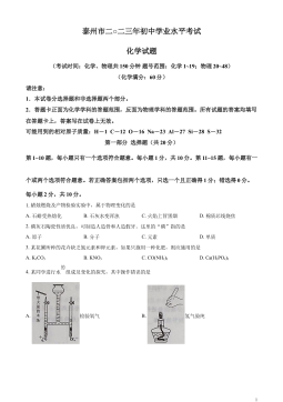 【淘宝搜索店铺:中小学教辅资源店微信:mlxt2022】2023年抚顺本溪辽阳市初中毕业生学业考试化学试卷※理化考试时间共150分钟化学试卷满分80分考生注意:请在答题卡各题目规定答题区域内作答,答在本试卷上无效。可能用到的相对原子质量:H-1C-12O-16Ca-40第一部分选择题(共20分)一、选择题(本题包括15个小题,共20分,每小题只有一个选项符合题意。第1小题~第10小题,每小题1分;第11小题~第15小题,每小题2分)1.下列通过丝绸之路传到国外的发明和技术中不涉及化学变化的是A.使用火药B.指南针用于航海C.用泥土烧制陶瓷D.冶炼金属2.保护环境卫生,学会垃圾分类。快递纸箱属于...