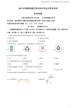 精品解析:2023年辽宁省抚顺市、本溪市、辽阳市中考化学真题(原卷版)