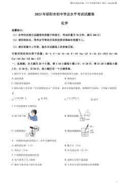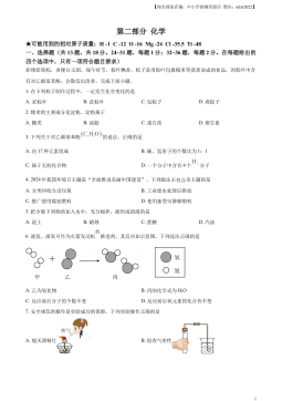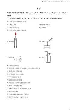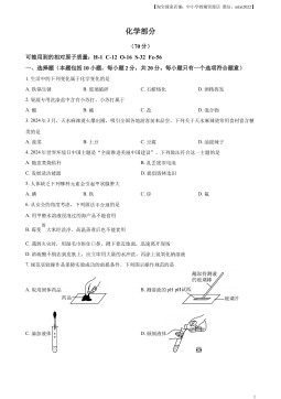 【淘宝搜索店铺:中小学教辅资源店微信:mlxt2022】二○二四年齐齐哈尔市初中学业考试化学试卷考生注意:1.考试时间90分钟2.全卷共五道大题,总分100分3.使用答题卡的考生,请将答案填写在答题卡的指定位置可能用到的相对原子质量:H-1C-12N-14O-16Na-23Mg-24S-32C1-35.5K-39Ca-40Fe-56Cu-64Zn-65Ag-108一、选择题(本题共15小题,每小题2分,共30分。1~12小题每题有一个选项符合题意,13~15小题每题有一个或两个选项符合题意)1.下列元素符号表示氟元素的是A.HeB.FC.PD.N2.下列各图所示实验操作正确的是A.点燃酒精灯B...