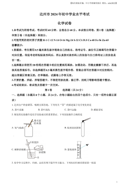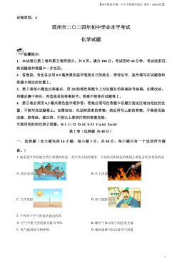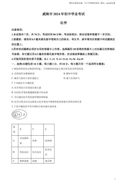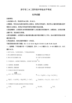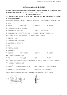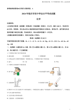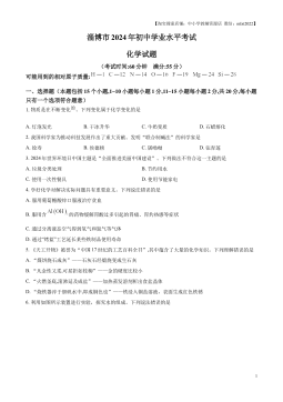【淘宝搜索店铺:中小学教辅资源店微信:mlxt2022】淄博市2024年初中学业水平考试化学试题(考试时间:60分钟满分:55分)可能用到的相对原子质量:一、选择题(本题包括15个小题,1~10小题每小题1分,11~15小题每小题2分,共20分,每小题只有一个选项符合题意)1.物质是在不断变化的。下列变化属于化学变化的是A.灯泡发光B.干冰升华C.牛奶变质D.石蜡熔化2.我国科学家为推动科技发展作出了重大贡献。发明“联合制碱法”的科学家是A.徐寿B.侯德榜C.屠呦呦D.张青莲3.2024年世界环境日中国主题是“全面推进美丽中国建设”。下列做法不符合这一主题的是A.垃圾分类处理B.节约用水C.使...