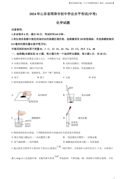 精品解析:2024年山东省淄博市中考化学真题(原卷版)