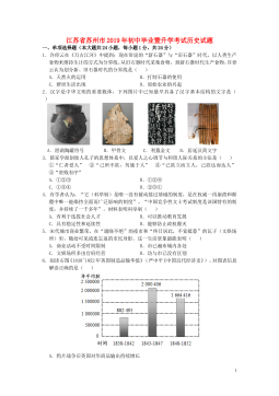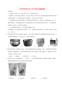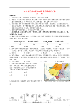 2016年苏州市初中毕业暨升学考试试卷历史注意事项:1.本试卷有4大题,共32小题,满分50分,考试用时50分钟;2.答题前,考生务必将由己的姓名、考点名称、考场号、座位号用0.5毫米黑色墨水签字笔填写在答题卡的相应位置上,井认真核对条形码上的准考号、姓名是否与本人的相符合;3.答选择题须用2B铅笔把答题卡上对应题目的答案标号涂黑,如需改动,请用橡皮擦干净后,再选涂其他答案;答非选择题必须用0.5毫米黑色墨水签字笔写在答题卡上指定的位置上,不在答题区域内的答案一律无效,不得用其他笔答题;4.考生答题,必须答在答题卡上,答在试卷和草稿纸上无效。一、单项选择题:在每小题列出的四个选项中,只有一项是...