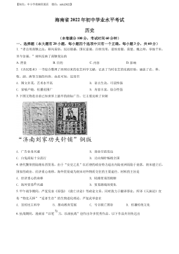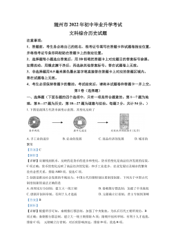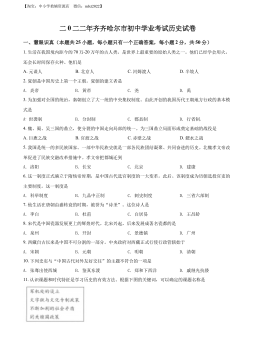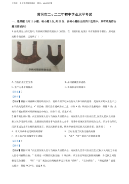 【淘宝:中小学教辅资源店微信:mlxt2022】黄冈市二o二二年初中学业水平考试一、选择题(共11小题,每小题2分,共22分。在每小题给出的四个选项中,只有项是符合题目要求的)1.在我国出土的文物中,有春秋时期的铁制农具(如图)。在《战国策.赵策》中有秦国用牛耕田,用河流运粮食的记载。这反映了()A.古代冶炼工艺完善B.水利灌溉技术成熟C.生产力水平的提高D.土地私有制的确立2.魏晋南北朝时期,内迁的各族人民与当地汉人错居杂处,向汉族人民学习农业技艺,汉族人民向北方各族人民学习畜牧经验。北朝政权的统治者与汉族士人合作,沿袭中原地区原有的统治方式。孝文帝改革后,汉语更成为北方主要的通用语言。西北...