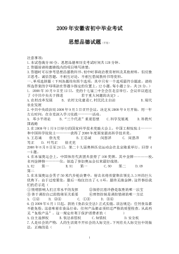 2009年河北省初中毕业生升学文化课考试文科综合试卷(思想品德、历史)卷I(选择题,共50分)本卷共27题,1~4题每题1分,5~27题每题2分,共50分。在每题列出的四个选项中,只有一项是最符合题目要求的。“圣火燃,金牌揽,百年奥运今梦圆;开幕式,世震撼,长卷舒展五千年。”这是艾华同学奥运期间收到的一条短信。回答1~2题。1.“圣火燃,金牌揽”。在第二十九届奥运会上,中国体育代表团取得了枚金牌的优异成绩。A.28B.32C.51D.1002.“开幕式,世震撼”。这种震撼主要源于()A.鸟巢设计新颖独特B.中华文化源远流长、博大精深C.世界文化丰富多彩D.科学技术迅猛发展、日新月异2008年9...