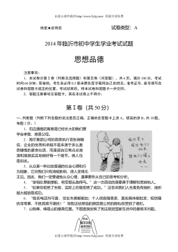 2014年河北省初中毕业生升学文化课考试文科综合(政治)试卷本试卷分卷1、卷II两部分:卷I为选择题,卷II为非选择题。本试卷满分120分,考试时间120分钟。卷I(选择题,共50分)注意事项:1.答卷I前,考生务必将自己的姓名、准考证号、科目填涂在答题卡上,考试结束,监考人员将试卷和答题卡一并收回。2.每题选出答案后,用2B铅笔把答题卡上对应题目的答案标号涂黑。答在试卷上无效。3.考生须独立完成答卷.不得讨论,不得传抄。本卷共23题,1~19题每题2分.20~23题每题3分,共50分.在每题列出的四个选项中,只有一项是最符台题目要求的。【2014河北】1.公务员为群众办好每一件实事、商家为消...