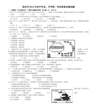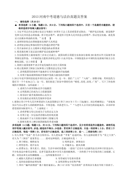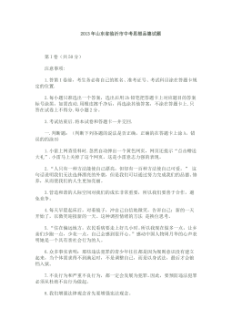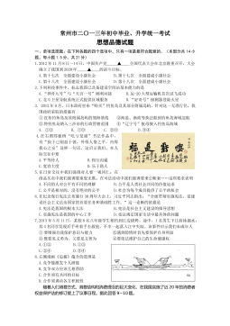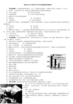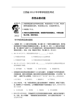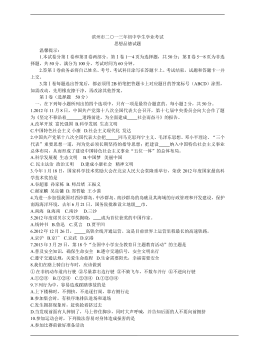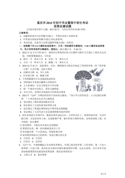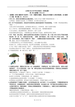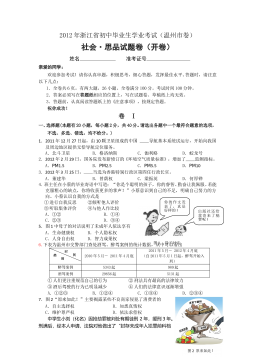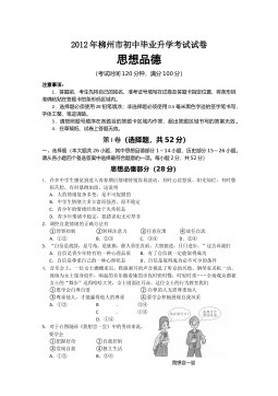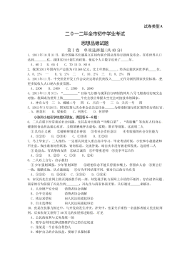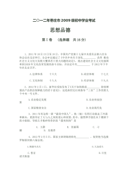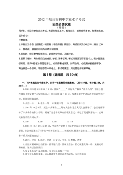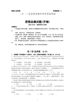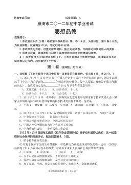 绝密☆启用前试卷类型:A二0一二年东营市初中学生学业考试思想品德试题(开卷)(总分100分考试时间60分钟)注意事项:1.本试题为开卷考试题。答卷时允许翻看课本和有关资料,但必须独立作答,不得交头接耳、相互讨论,不得相互传阅、交换资料。2.本试题分第Ⅰ卷和第Ⅱ卷两部分。第Ⅰ卷2页为选择题,32分;第Ⅱ卷4页为非选择题,68分;答第Ⅰ卷前务必将自己的姓名、考号、考试科目、试卷类型涂写在答题卡上。考试结束,试题和答题卡一并收回。3.第Ⅰ卷每题选出答案后,都必须用2B铅笔把答题卡上对应题目的答案标号(ABCD)涂黑,如需改动,必须先用橡皮擦干净,再改涂其他答案。第I卷(选择题 32分)一、选择题(下...