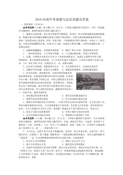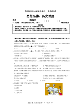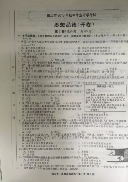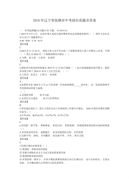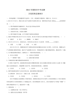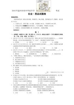 2016年辽宁省抚顺、本溪、铁岭、葫芦岛市中考政治试题(空白卷)