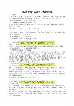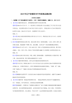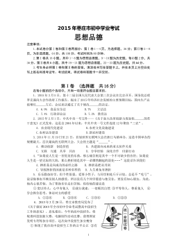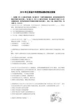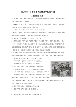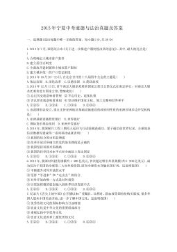 2015年宁夏中考道德与法治真题及答案一、选择题(选出每题中唯一正确的答案。每小题2分,共20分) 1.2014年7月,国务院公布《关于进一步推进户籍制度改革的意见》。其中,最大的亮点是( )A.合理确定大城市落户条件B.建立居住证制度C.全面放开建制镇和小城市落户限制D.建立城乡统一的户口登记制度2.2014年10月20—23日,在北京召开的十八届四中全会的主题是( )A.依法治国B.深化改革C.以德治国D.简政放权3.2014年12月13日,首个南京大屠杀死难者国家公祭日公祭仪式在南京举行。对南京大屠杀死难者进行国家公祭,警醒我们( )①忘...