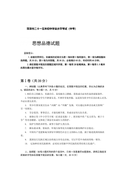 1新疆维吾尔自治区新疆生产建设兵团 2014年初中学业水平考试民族团结教育、思想品德(开卷)考生须知:1.本试卷分为试题卷和答题卷两部分。2.试题卷共8页。满分150分,其中民族团结教育占30分,思想品德、历史各占60分。考试时间120分钟。3.答题卷共4页,所有答案必须写在答题卷上,写在试题卷上无效.4.答题前,考生应先在答题卷密封区内认真填写准考证号、姓名、考场号、座位号、地(州、市、师)、县(市、区、团场)和学校。5.考试时,考生可带教材及相关资料,但要遵守考场纪律,独立完成考试。民族团结教育试题卷(共30分)一、选择题(本大题共9小题,每小题2分,共18分。在每小题列出的四个选项中,只...