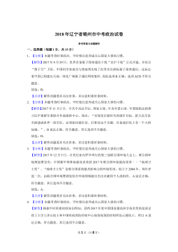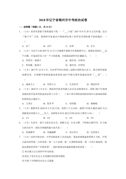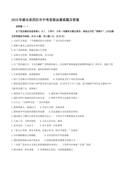 2018年江苏省徐州市中考政治试卷一、单项选择题(每题2分,共26分)1.2017年11月24日,中国申报的( )顺利通过联合国教科文组织世界记忆工程国际咨询委员会的评审,成功入选《世界记忆名录》。A.南京大屠杀档案B.“慰安妇”的声音项目C.甲骨文D.广西龙胜龙脊梯田系统2.2017年11月17日上午,在全国精神文明建设表彰大会上,徐州市被授予“( )”称号。这项荣誉的获得,凝聚着全市人民的智慧和力量。A.双拥模范城市B.国家卫生城市C.国家生态园林城市D.全国文明城市3.根据国家发改委、民航局等七个部门联合签署的意见,从2018年5月1日起,特定严重失信人乘坐民用航空器会受到限制,这样...