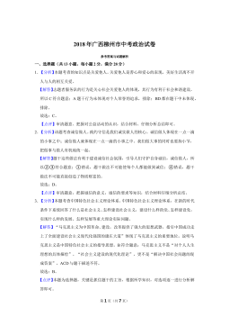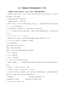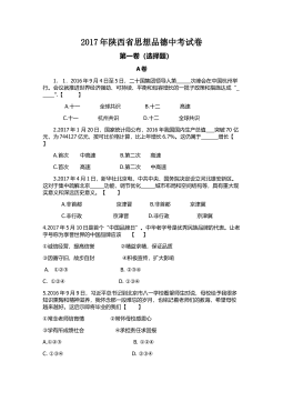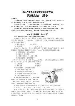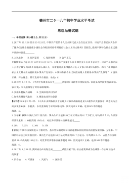 绝密★启用前 试卷类型:A 德州市二0一八年初中学业水平考试 思想品德试题注意事项: 本试卷共4页,满分100分,考试时间70分钟。请将所有题目的答案答在答题卡上,答在本试卷上一律无效。考试结束后,将本试卷和答题卡一并交回。一、单项选择(每小题2分,共32分)1.2017年10月18日至10月24日,中国共产党第十九次全国代表大会在北京召开。习近平总书记向大会作了题为(决胜全面建成小康社会夺取新时代中国特色社会主义伟大胜利》的报告,强调中国特色社会主义最本质的特征是A.人民主体 B.共同富裕 C.党的领导 D.公平正义2.2018年2月4日,《中共中央国务院关于的意见》由新华社受...