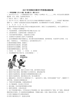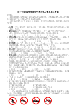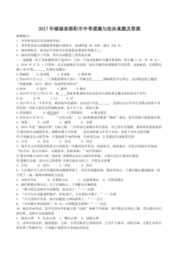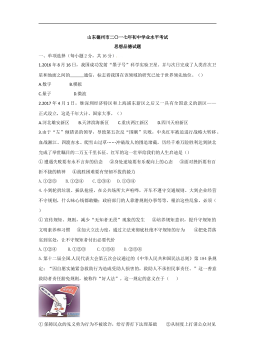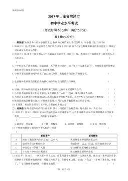 第1页共6页菏泽思品试卷2017年山东省菏泽市初中学业水平考试(考试时间:60分钟满分:50分)第Ⅰ卷(共20分)一、辨别题(认真思考下列各小题的说法,你认为正确的填A,错误的填B。每小题1分,共10分)1.2016年11月,教育部、公安部等九部门联合印发了《关于防治中小学生欺凌和暴力的指导意见》,体现了对未成年人的司法保护。()2.2017年3月,第十二届全国人大五次会议在北京召开,2018年3月,我国应召开的是第十二届全国人大六次会议。()3.“平时给儿子洗衣做饭,洗脸洗澡。儿子博士毕业后,除了学习什么都不会了”,神童母亲的忏悔警示我们青少年要学会自立自强,克服依赖性。4.小丽为家境贫困的...