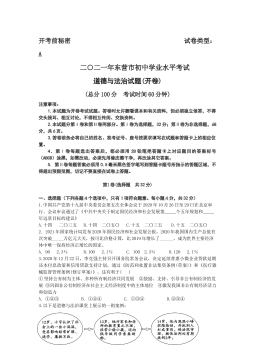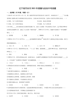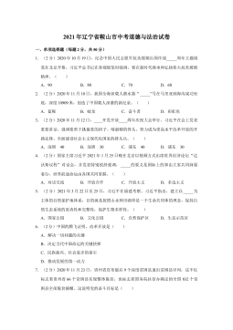 2021年辽宁省抚顺、本溪、铁岭、葫芦岛市中考道德与法治真题(原卷版)第一部分选择题(共25分)一、单项选择题(本题共25个小题,每小题1分,共25分。每小题只有一个答案最符合题意)1.2020年9月28日,教育部印发了《大中小学国家安全教育指导纲要》,落实相关法律提出的“将国家安全教育纳入_______体系”要求。()A.义务教育B.学校教育C.国民教育D.家庭教育2.2020年12月17日1时59分,_______返回器安全着陆,探月工程任务取得圆满成功,创造了_______项“中国首次”。()A.嫦娥五号4B.嫦娥五号5C.嫦娥四号4D.嫦娥四号53.2020年12月16日至18日,中央...
