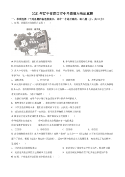 2021年辽宁省抚顺、本溪、铁岭、葫芦岛市中考道德与法治真题(原卷版)
