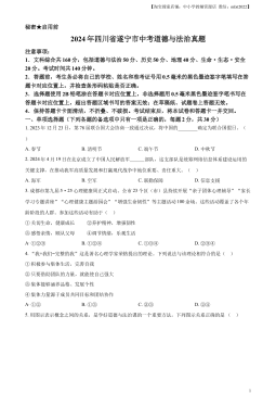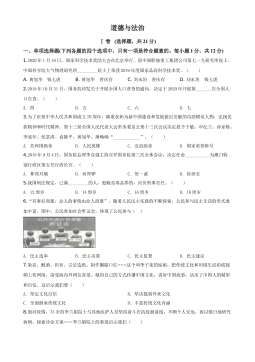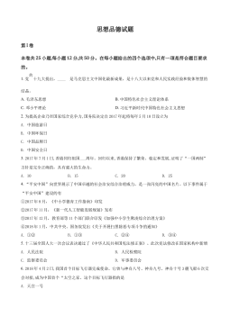 思想品德试题第I卷本卷共25小题,每小题12分,共50分。在每小题给出的四个选项中,只有一項是符合题目要求的。1.党的十九大提出,____ 是马克思主文中国化最新成果,是十八大以来党和人民实践经验和集体智慧的结晶。A.毛泽东思想B.中国特色社会主义理论体系C.邓小平理论D.习近平新时代中国特色社会主义思想2.为提高企业乃至国家综合竞争力,国务院决定自2017年起将每年5月10日设立为A.中国旅游日B.中国环保日C.中国品牌日D.中国安全日3.2017年7月1日,香港同归祖国___周年。回归以来,香港保持了繁荣、稳定和发展,证明了“一国两制”方针是完全正确的,具有强大的生命力。A.10B.15C...
