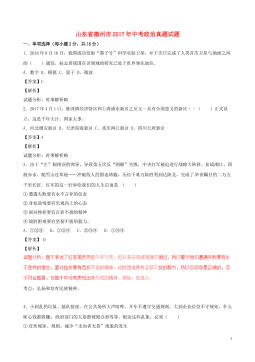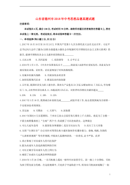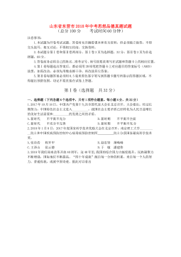 山东省德州市2018年中考思想品德真题试题注意事项: 本试卷共4页,满分100分,考试时间70分钟。请将所有题目的答案答在答题卡上,答在本试卷上一律无效。考试结束后,将本试卷和答题卡一并交回。一、单项选择(每小题2分,共32分)1.2017年10月18日至10月24日,中国共产党第十九次全国代表大会在北京召开。习近平总书记向大会作了题为(决胜全面建成小康社会夺取新时代中国特色社会主义伟大胜利》的报告,强调中国特色社会主义最本质的特征是A.人民主体 B.共同富裕 C.党的领导 D.公平正义2.2018年2月4日,《中共中央国务院关于的意见》由新华社受权发布。该意见为全面实现农业强、农村美...