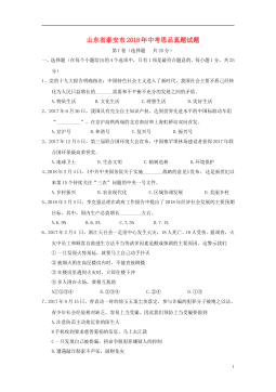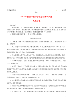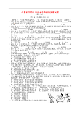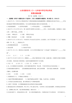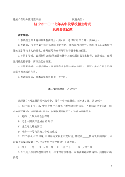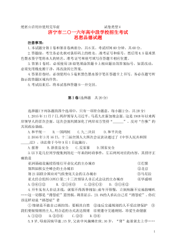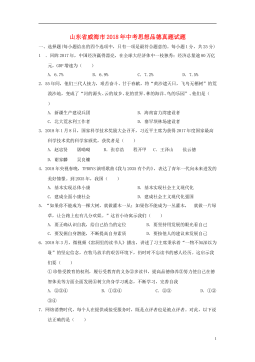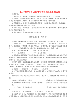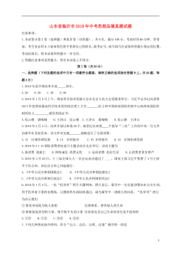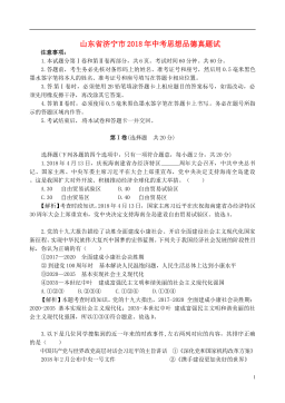 山东省济宁市2018年中考思想品德真题试题注意事项:1.本试题分第Ⅰ卷和第Ⅱ卷两部分,共6页。考试时间60分钟。共60分。2.答题前,考生务必先核对条形码上的姓名、准考证号和座号,然后用0.5毫米黑色墨水签字笔将本人的姓名、准考证号和座号填写在答题卡相应位置。3.答第Ⅰ卷时,必须使用2B铅笔填涂答题卡上相应题目的答案标号,如需改动,必须先用橡皮擦干净,再改涂其它答案。4.答第Ⅱ卷时,必须使用0.5毫米黑色墨水签字笔在答题卡上书写。务必在题号所指示的答题区域内作答。5.考试结束后,将本试卷和答题卡一并交回。第I卷(选择题 共20分)选择题(下列各题的四个选项中,只有一项符合题意,每小题2分,共2...