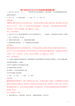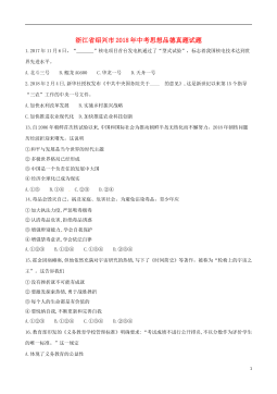 浙江省绍兴市2018年中考思想品德真题试题1.2017年11月6日,“”核电项目首台发电机通过了“型式试验”,标志着我国核电技术达到世界先进水平。A.北斗三号 B.鲲龙AG600 C.华龙一号 D.天舟一号2.2018年2月4日,新华社授权发布《中共中央国务院关于____ 的意见》,这是新世纪以来第15个指导“三农”工作的中央一号文件。A.加快水利改革发展 B.实施乡村振兴战略C.加快推进农业现代化 D.加快推进农业科技创新13.自2006年朝鲜首次核试验以来,中国和国际社会为推动朝鲜半岛无核化而不懈努力,2018年朝核问题历经波折迎来曙光。这说明①和平与发展是当今世界的时代主题 ②...