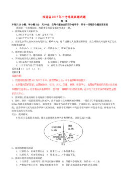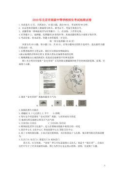 2O19年广东省初中学业水平考试地理说明:1.全卷共8页,满分为100分,考试用时为60分钟。2.答卷前,考生务必用黑色字迹的签宇笔或钢笔在答题卡填写自己的准考证号、姓名、考场号、座位号。用2B铅笔把对应该号码的标号涂黑。3.选择题每小题选出答案后,用2B铅笔把答题卡上对应题目选项的答案信息点涂黑,如需改动,用橡皮擦干净后,再选涂其他答案,答案不能答在试题上。4.非选择题必须用黑色字迹钢笔或签字笔作答、答案必须写在答题卡各题目指定区域内相应位置上;如需改动,先划掉原来的答案,然后再写上新的答案;不准使用铅笔和涂改液。不按以上要求作答的答案无效。5.考生务必保持答题卡的整洁。考试结束时,将试卷和...