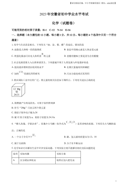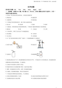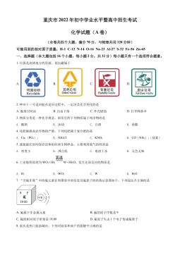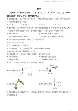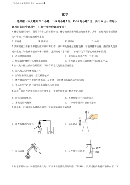 【中小学教辅资源店微信:mlxt2022】化学一、选择题(本大题共26个小题,1-14每小题2分,15-26每小题3分,共计64分。在每小题列出的四个选项中,只有一项符合题目要求)1.化学发展长河中,凝结了许多人的辛勤劳动,化学使世界变得更加绚丽多彩。其中,在相对原子质量测定中作出了卓越贡献的科学家是A.张青莲B.侯德榜C.屠呦呦D.杨振宁2.我国政府工作报告中提出做好碳中和工作。碳中和是指通过植树造林、节能减排等措施,抵消因人类活动产生的二氧化碳等温室气体排放量,达到相对“零排放”。下列行为不利于实现碳中和的是A.教科书循环使用B.用自行车代替汽车上下班出行C.燃烧农作物秸秆以增加土地肥效D...